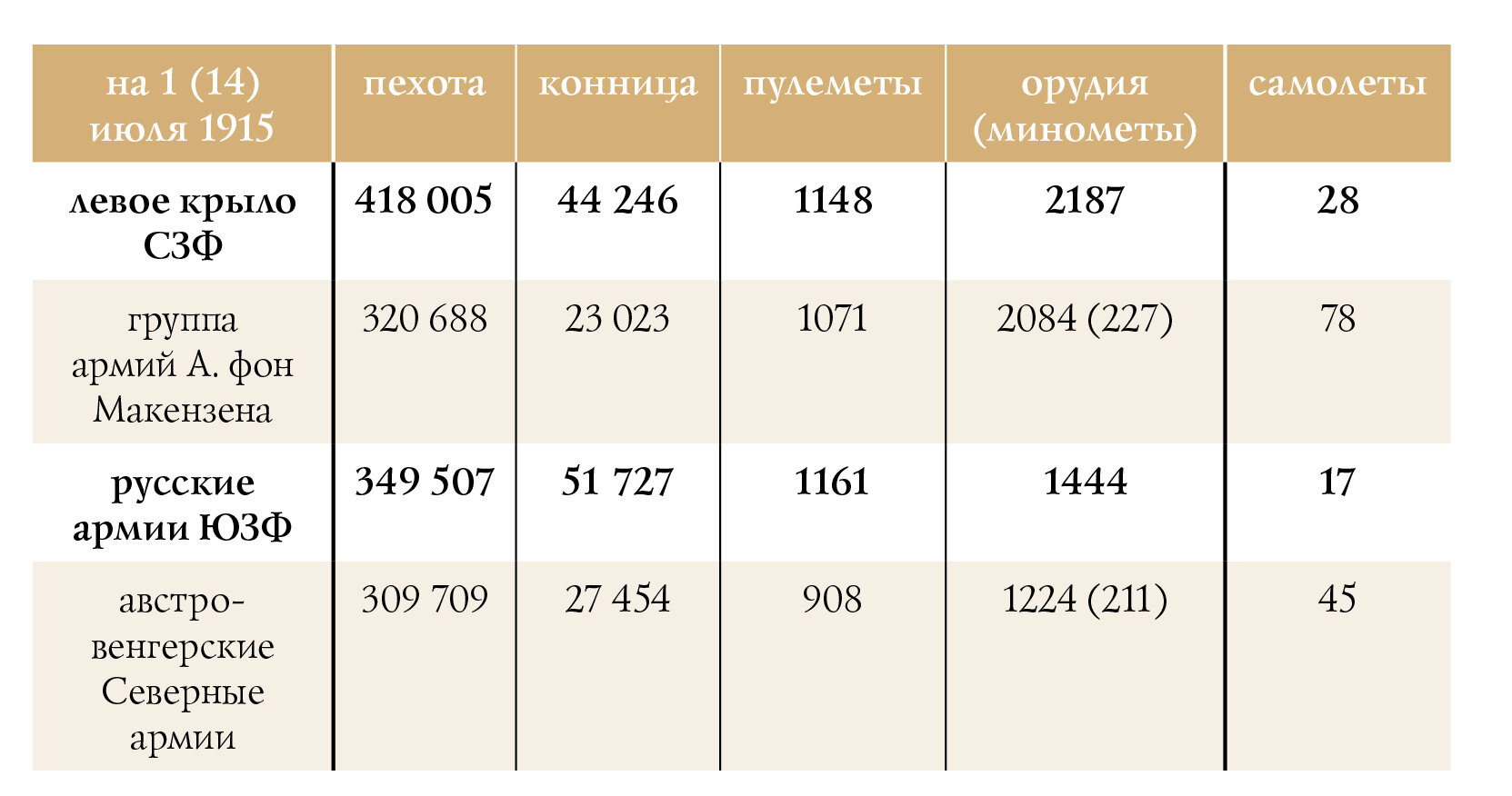 Соотношение сил на южном крыле армий Северо-Западного фронта и в армиях Юго-Западного фронта к 1 (14) июля