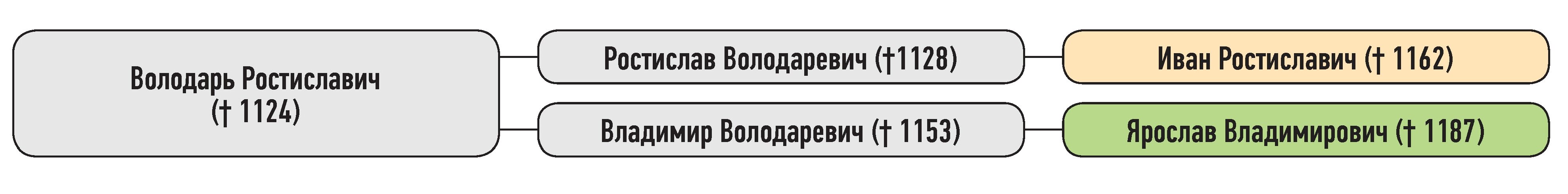 Иван Ростиславич — сын Ростислава Володаревича, Ярослав Владимирович — сын Владимира Володаревича