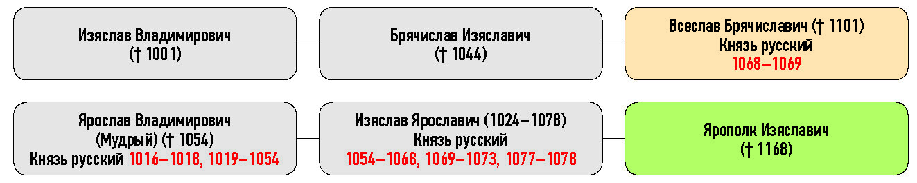 Генеалогическая схема к усобице Ярополка Изяславича и Всеслава Брячиславича в 1071 г.