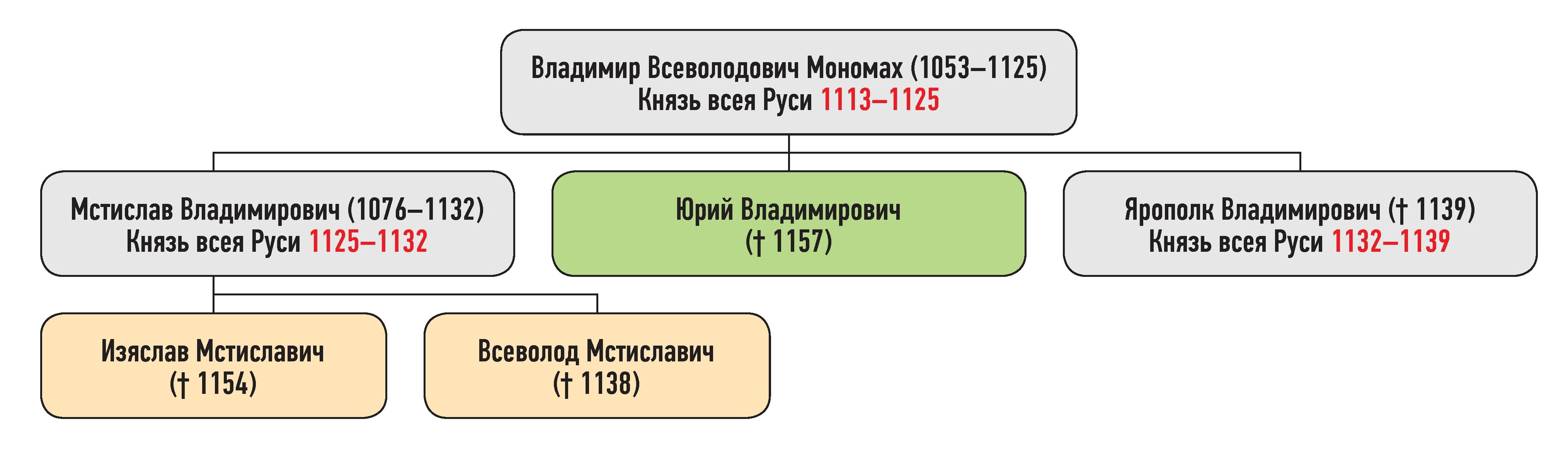 Генеалогическая схема к усобице Ярополка Владимировича и Юрия Владимировича в 1132 г.