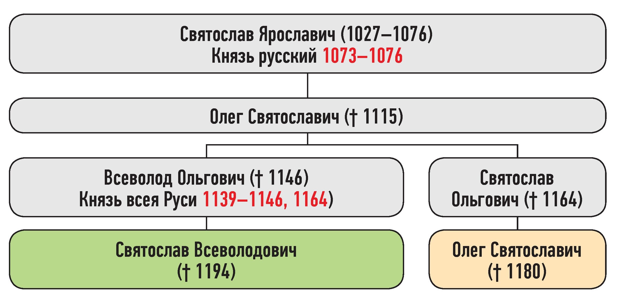 Олег Святославич — сын Святослава Ольговича, Святослав Всеволодович — сын Всеволода Ольговича