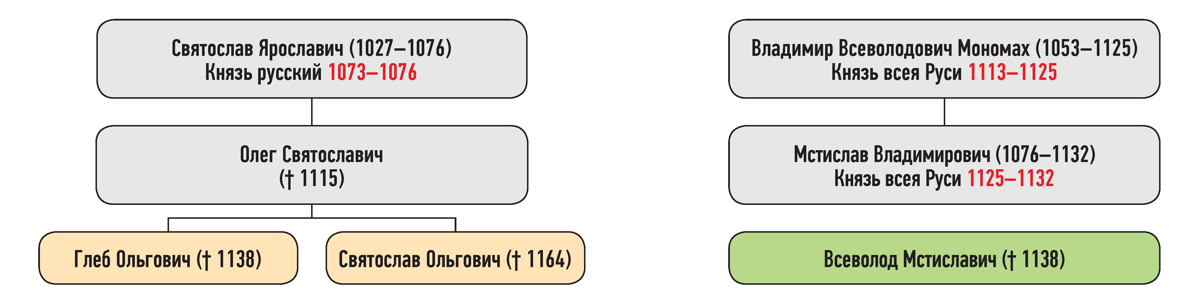 Оригинальная схема, создана для описания усобицы Всеволода Мстиславича и Святослава Ольговича в1137 г.