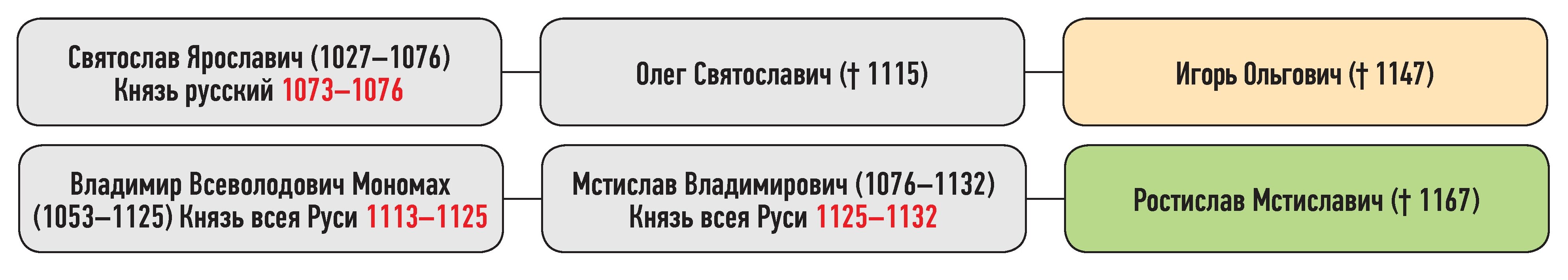 Ростислав Мстиславич — сын Мстислава Владимировича, Игорь Ольгович — сын Олега Святославича
