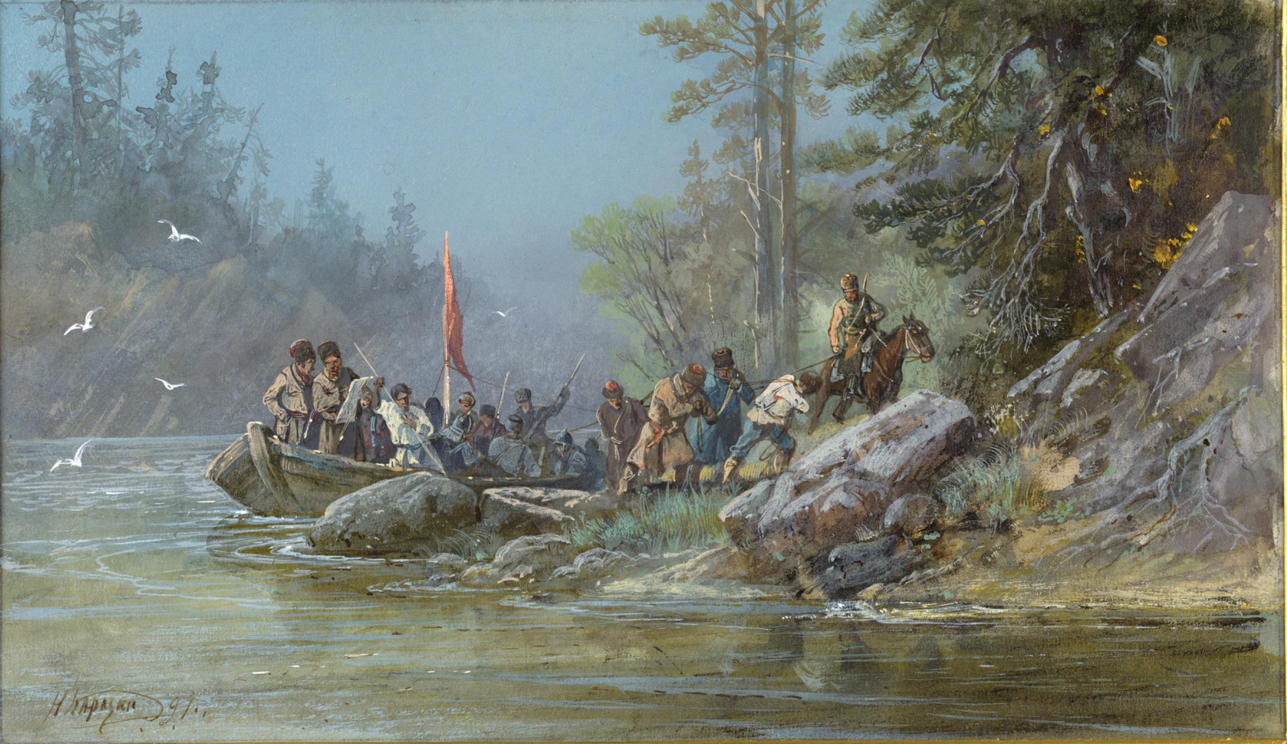 Подведение сибирских инородцев под высокую Царскую руку. Целование атамановой сабли как знак покорности и верности