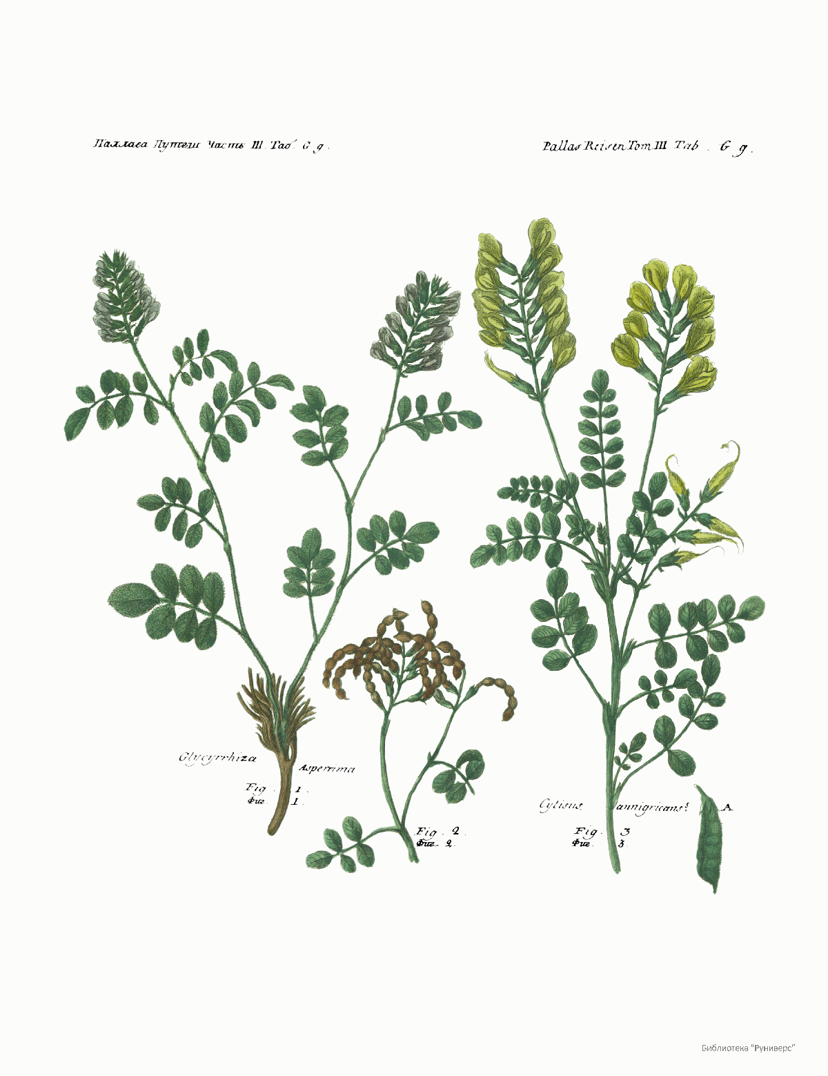 Том III. Таб.Gg. Glycyrrhiza Asperrima. Cytisus annigricans.