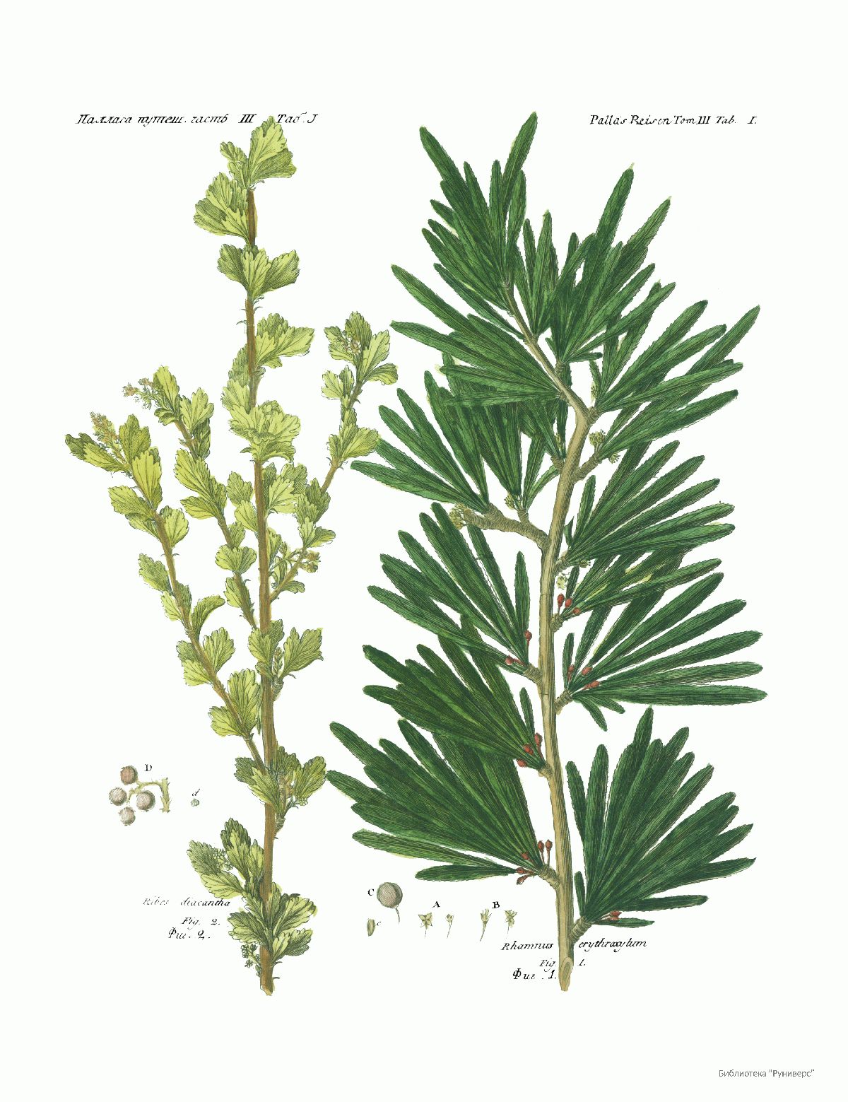 Том III. Таб.J. Ribes diacantha. Rhamnus erythroxytum.