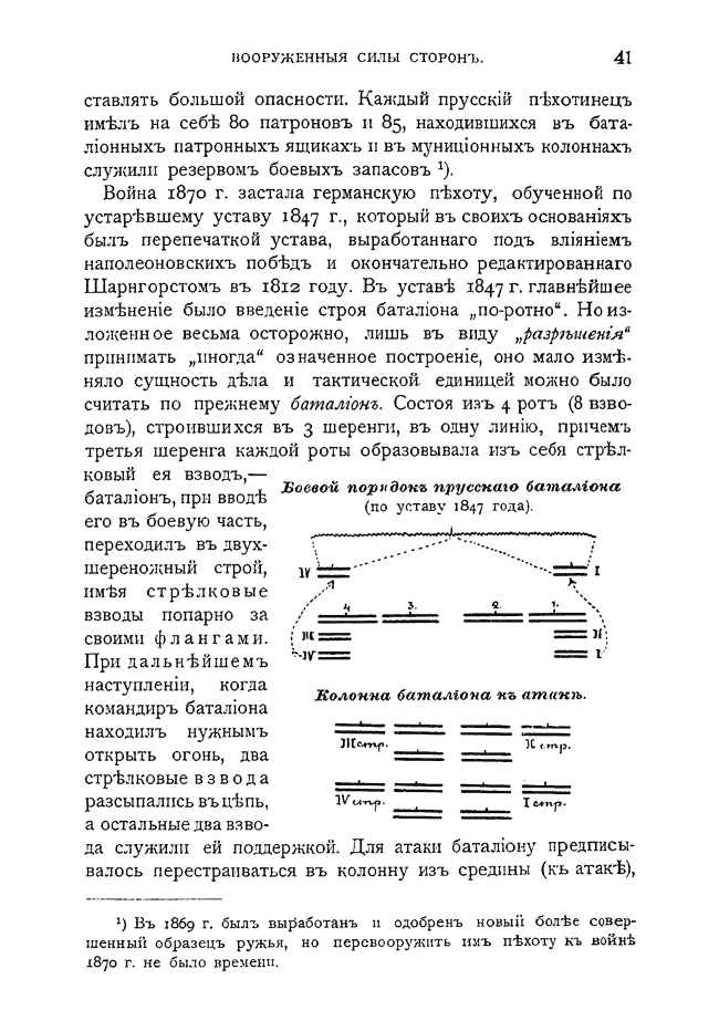 Боевой порядок прусского батальона (по уставу 1847 года).