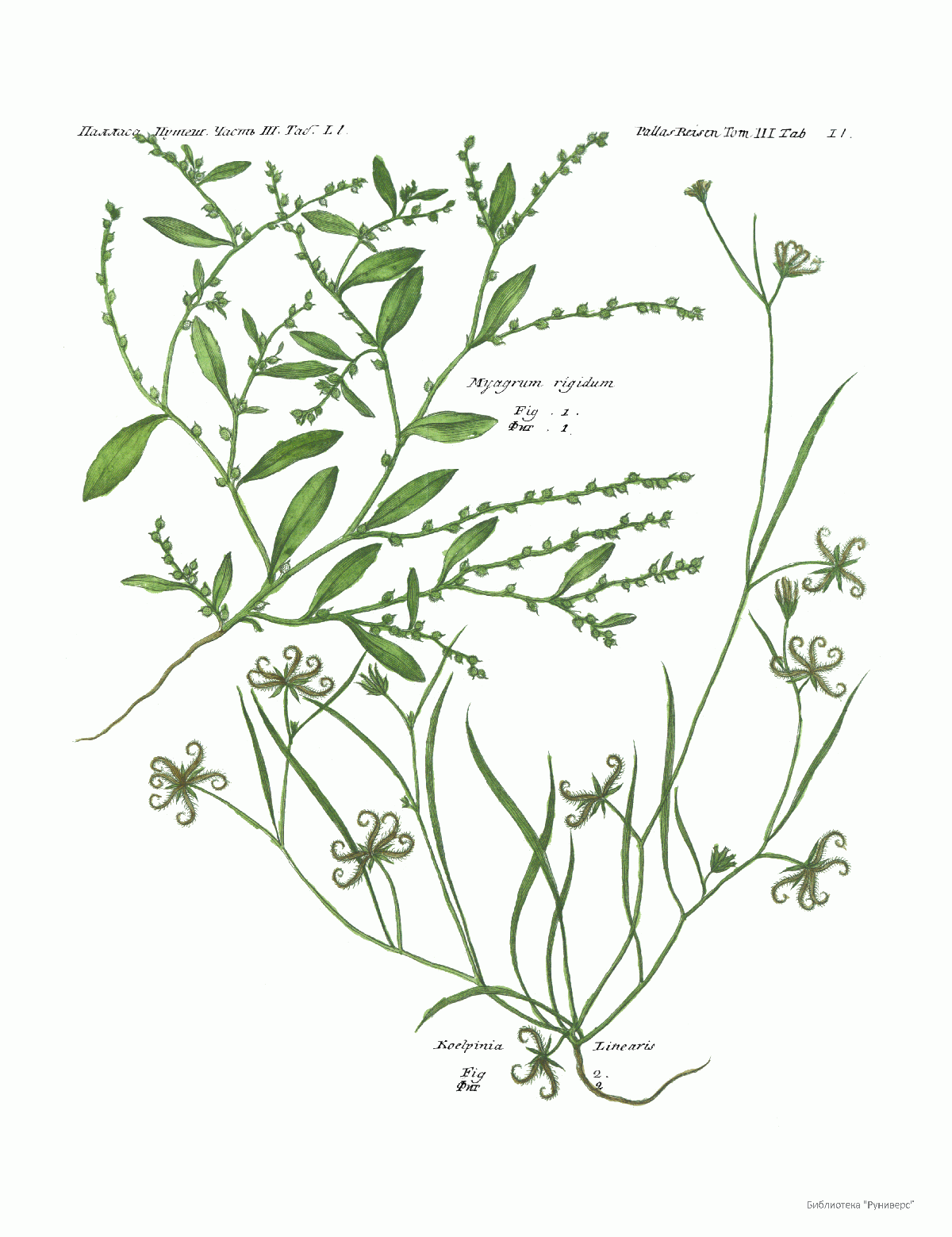 Том III. Таб.Ll. Myagrum rigidum.Koelpinia Linearis.