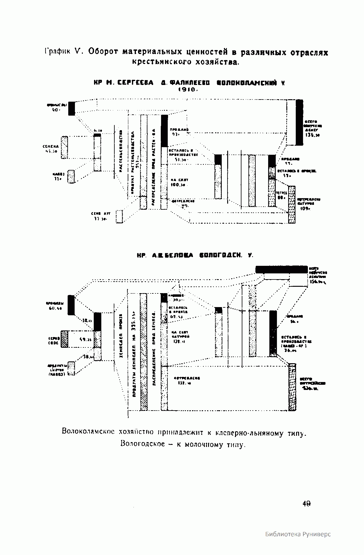 График V. Оборот материальных ценностей в различных отраслях крестьянского хозяйства.
