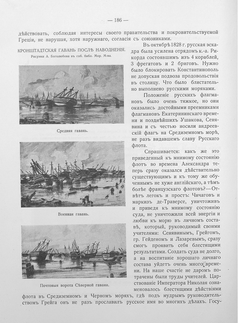 Кронштадская гавань после наводнения. Средняя гавань. Военная гавань. Почтовые ворота Северной гавани.