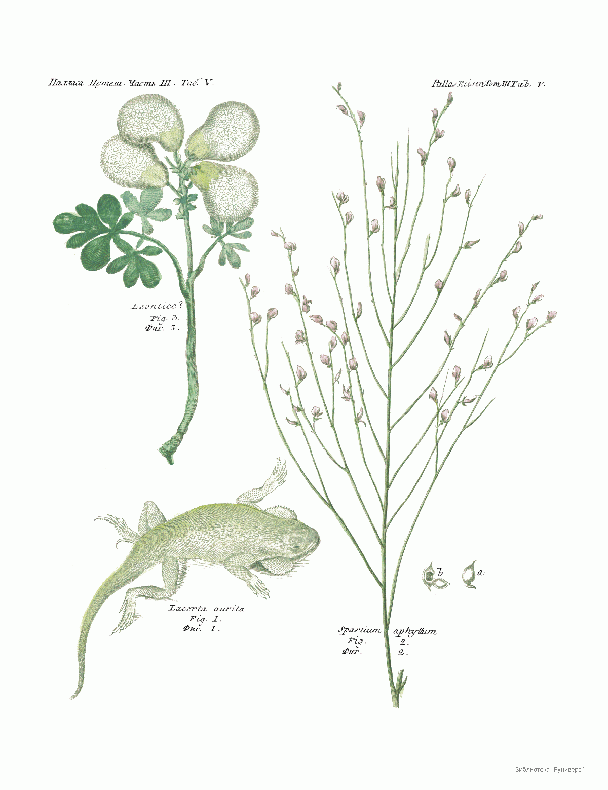Том III. Таб.V. Lacerta aurita. Spartium aphyllum.