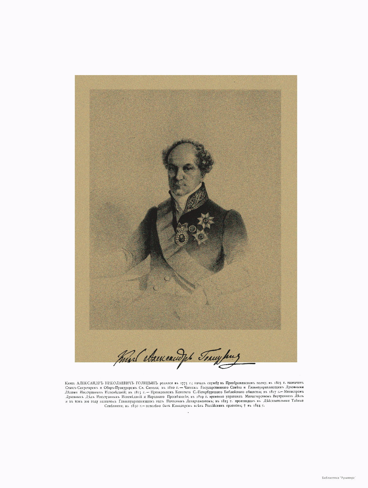 Главноуправляющий Духовными Делами Иностранных Исповеданий Князь Александр Николаевич Голицын, 1773-1844.