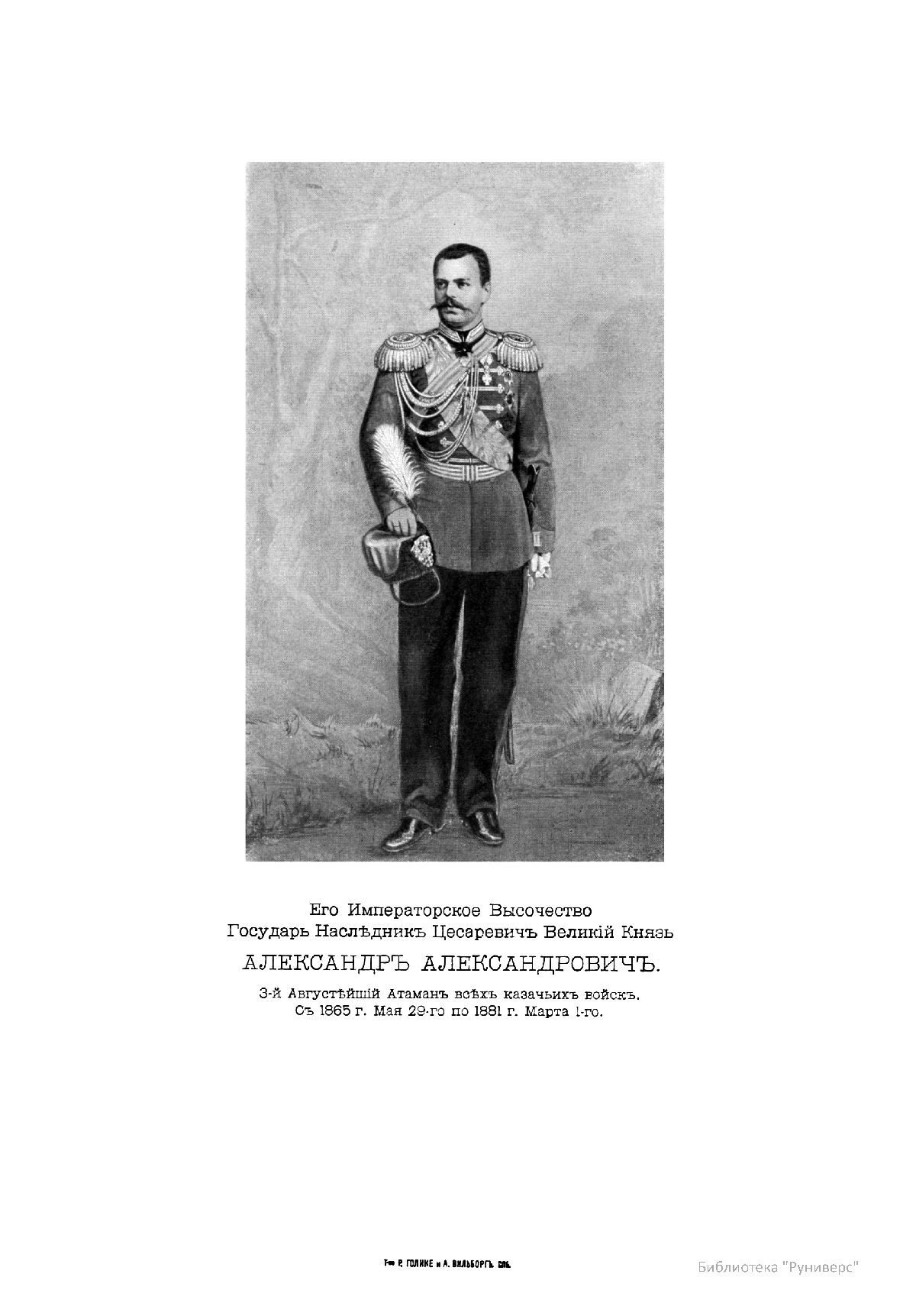 Его Императорское Высочество Государь Наследник Цесаревич Великий Князь Александр Александрович. 3-й Августейший Атаман всех казачьих войск. С 1865 г. Мая 29-го по 1881 г. Марта 1-го.