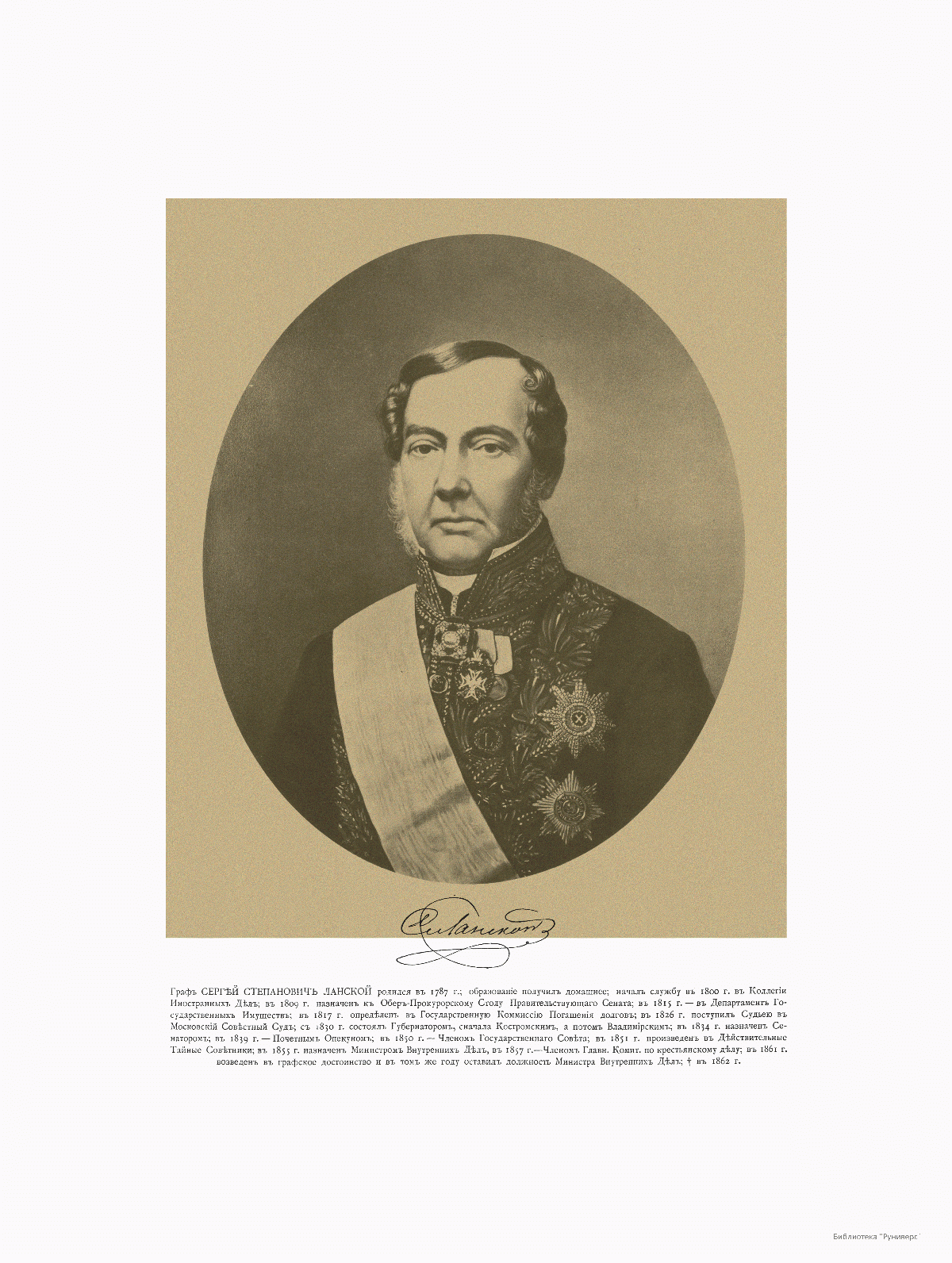 Министр Внутренних Дел Граф Сергей Степанович Ланской 1787-1862