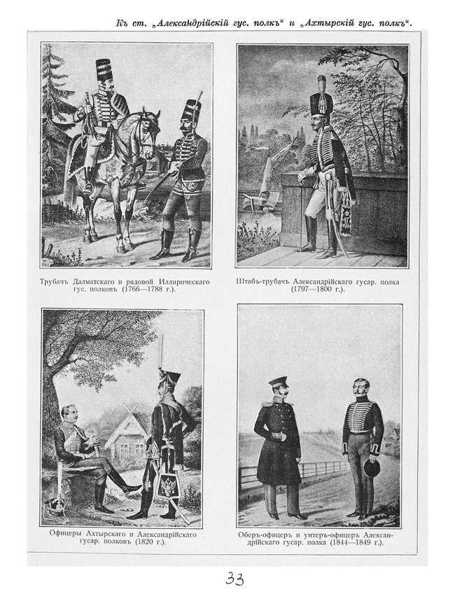 Формы обмундирования офицеров и нижних чинов Александрийского и Ахтырского гусарских полков.