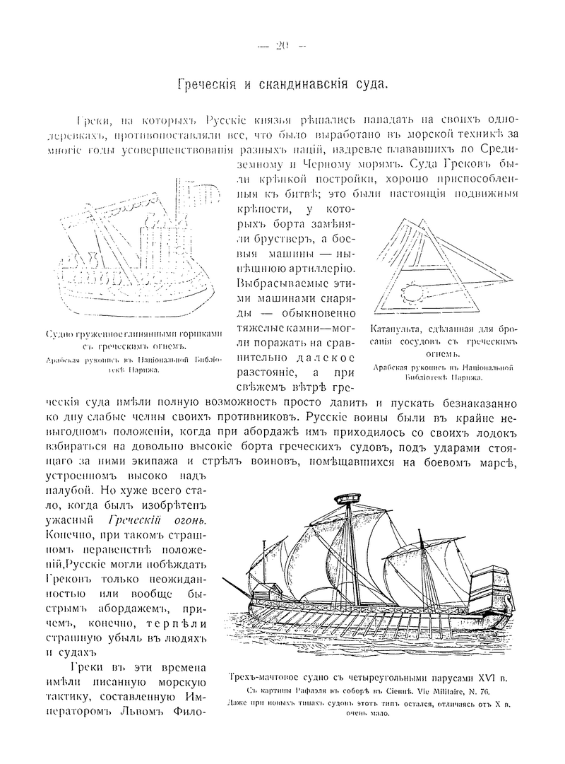 Катапульта, сделанная для бросания сосудов с греческим огнем. Арабская рукопись в Национальной Библиотеке Парижа.