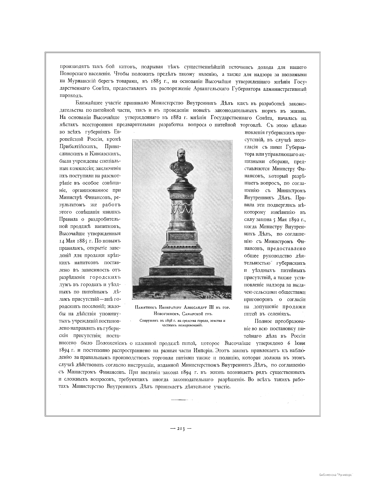 Памятник Императору Александру III в гор. Новокузенске, Самарской губернии. Сооружен в 1898 году на средства города, земства и частных пожертвований.