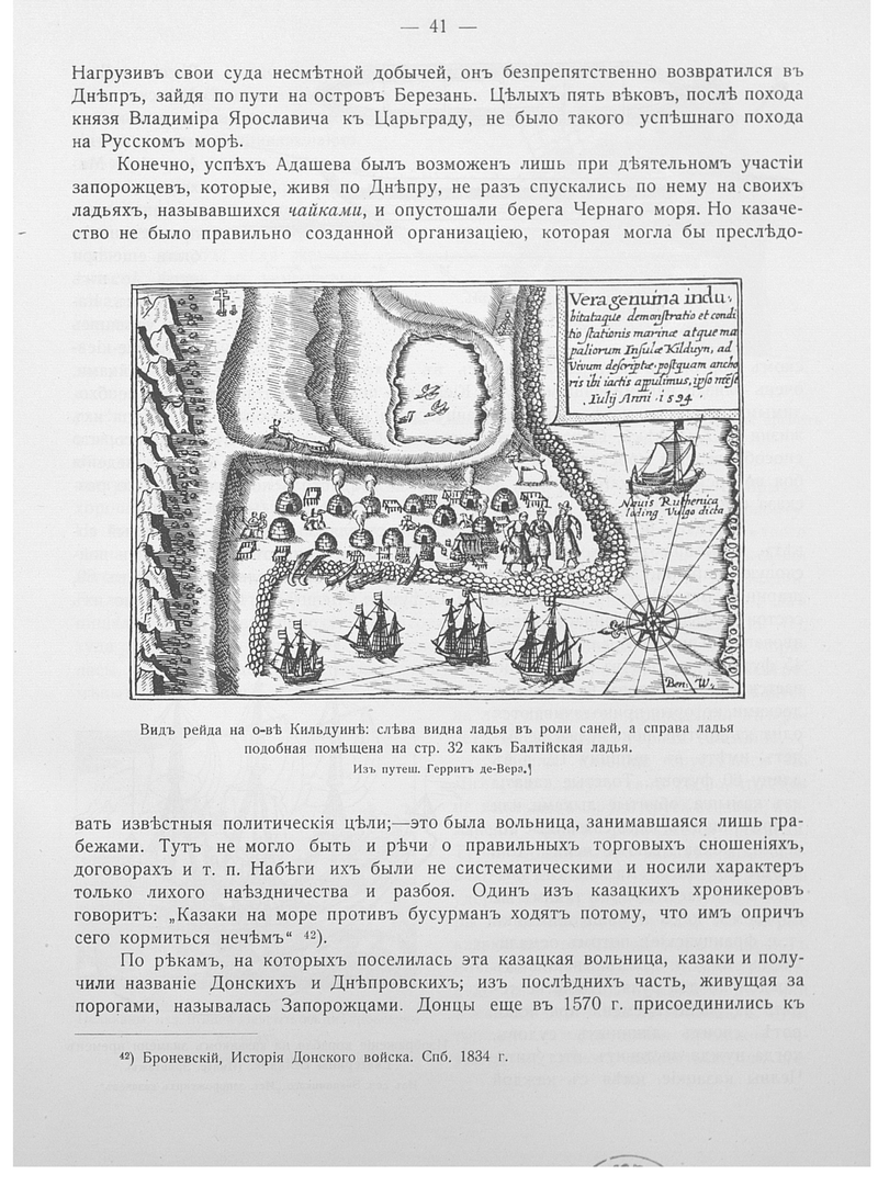 Вид рейда на о-ве Кильдуине: слева видна ладья в роли саней, а справа ладья подобная помещена на стр. 32 как Балтийская ладья.