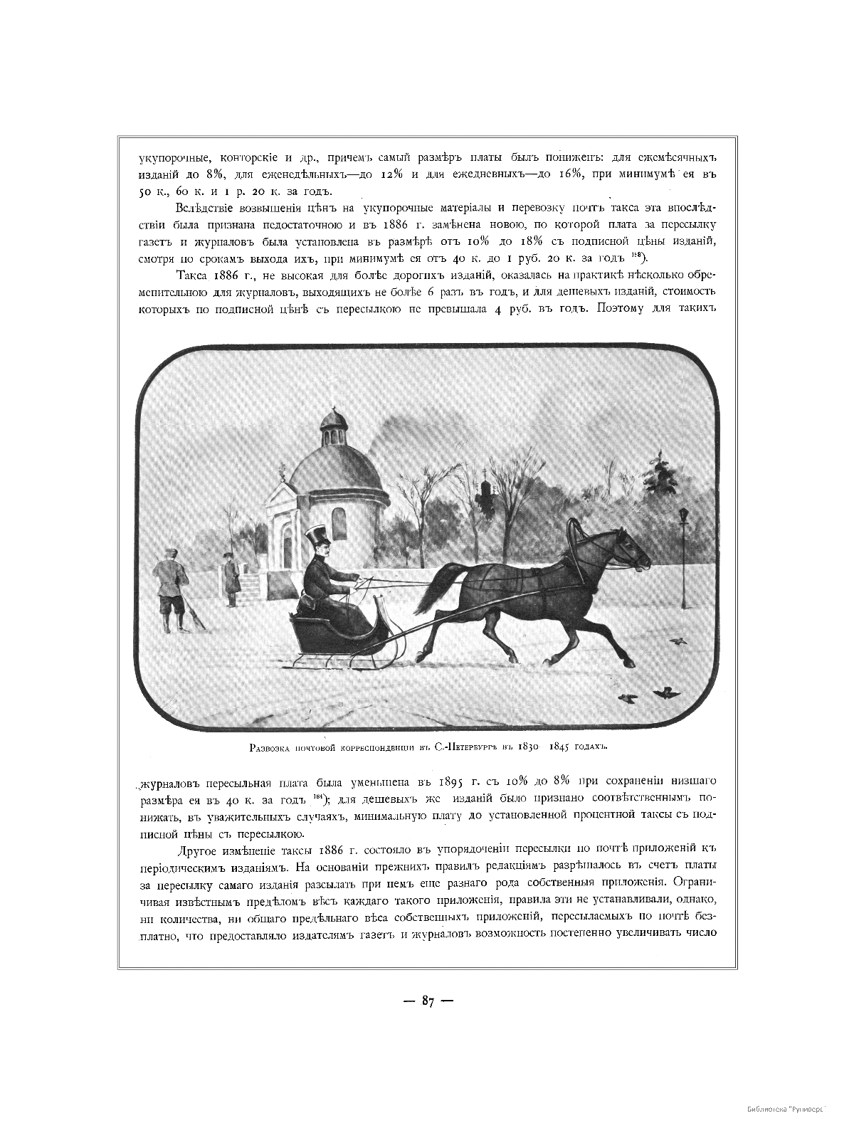 Развозка почтовой корреспонденции в С.-Петербурге в 1830-45 годах.