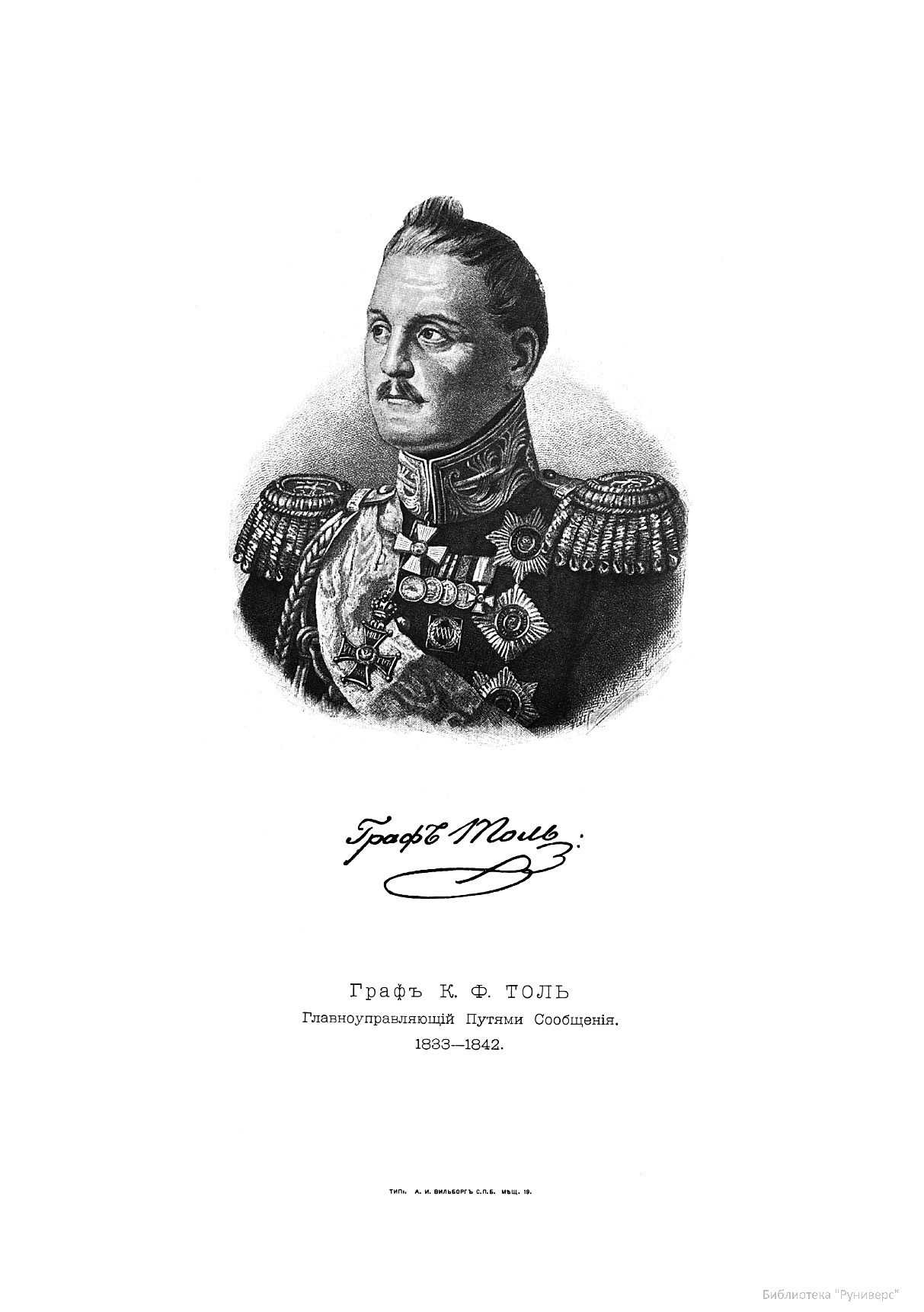 Граф К.Ф.Толь, Главноуправляющий Путями Сообщения 1833-1842.