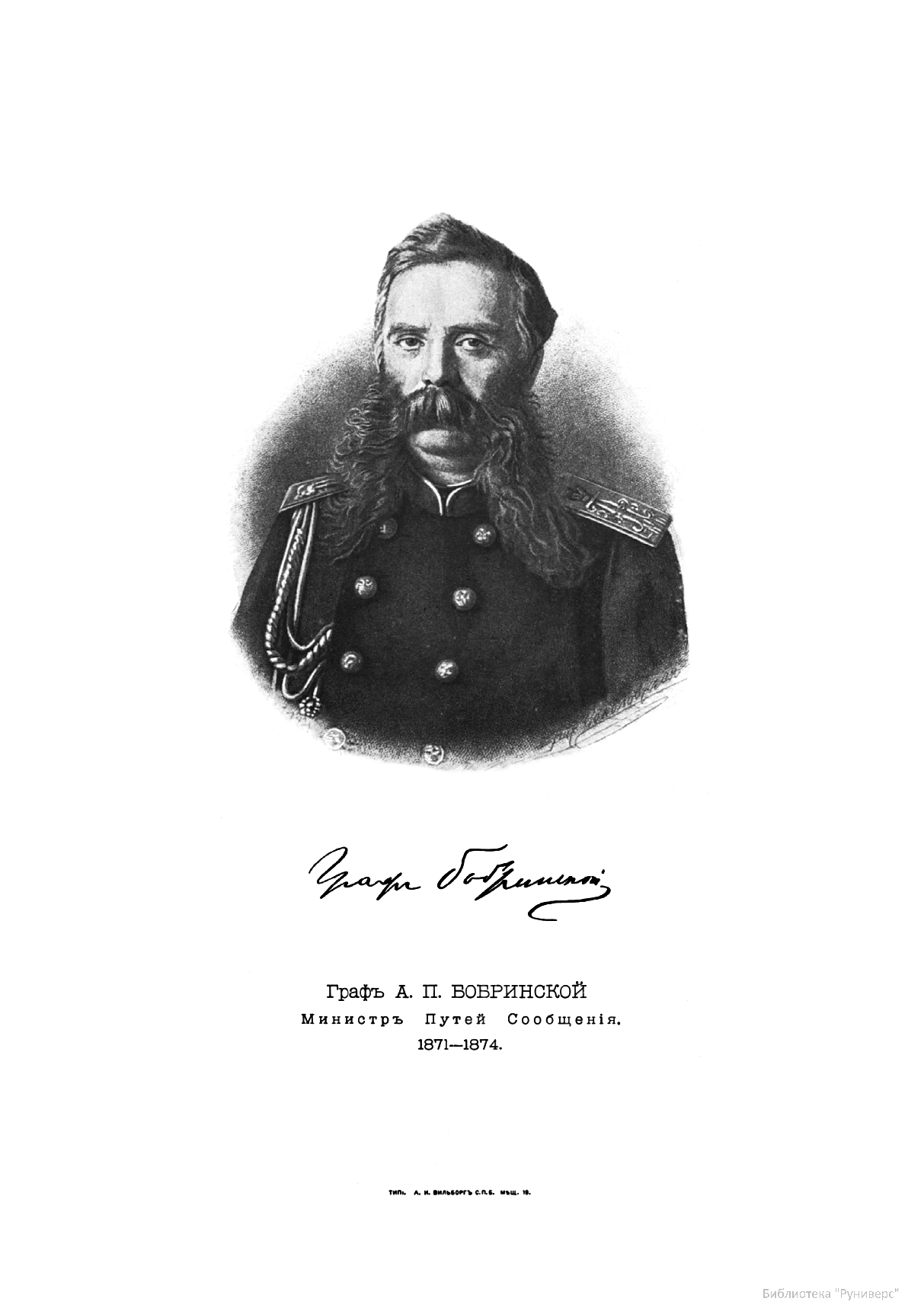 Граф А.П.Бобринский, Министр Путей Сообщения 1871-1874.