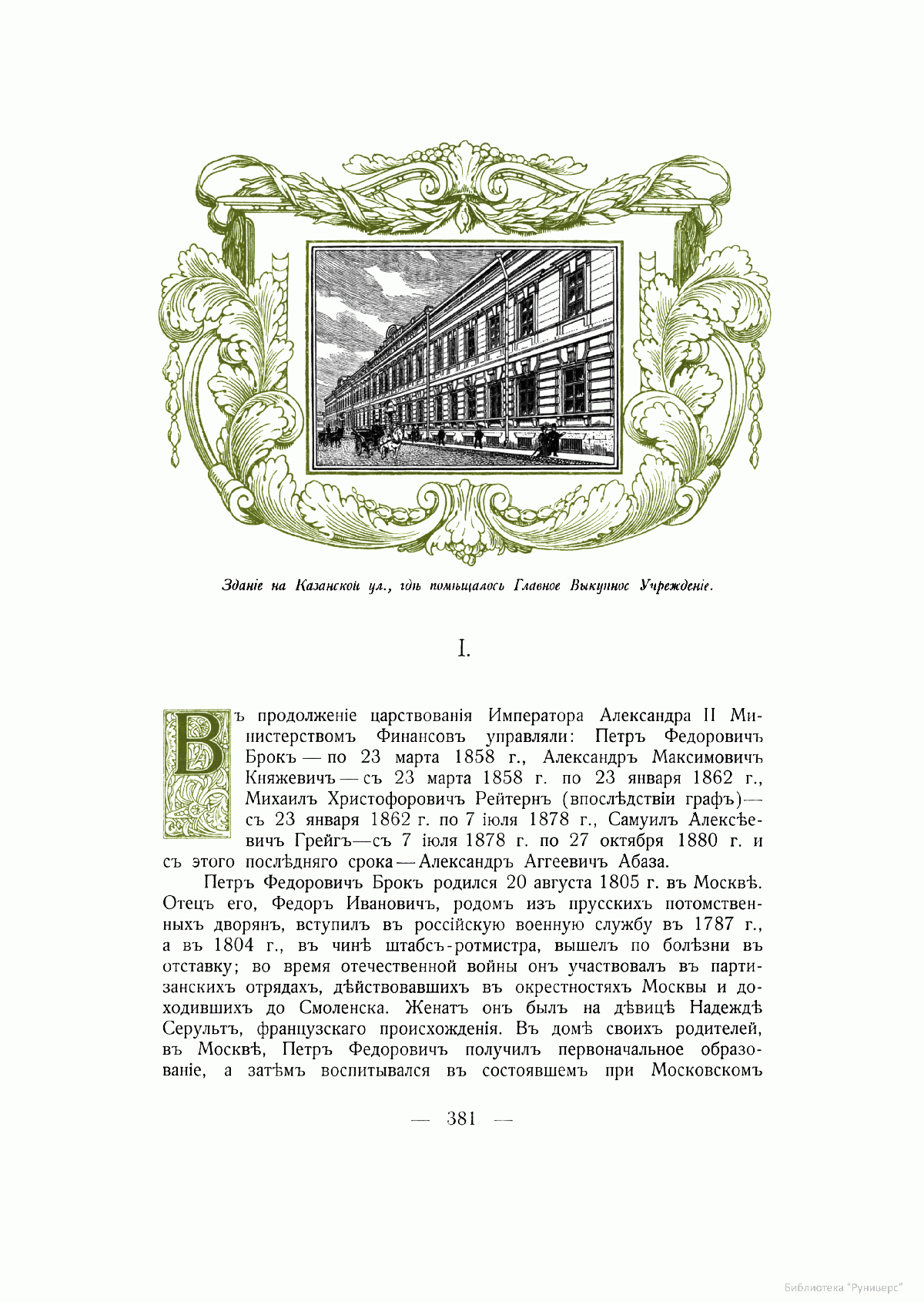 Здание на Казанской улице, где в царствование Императора Александра II помещалось Главное Выкупное Учреждение.