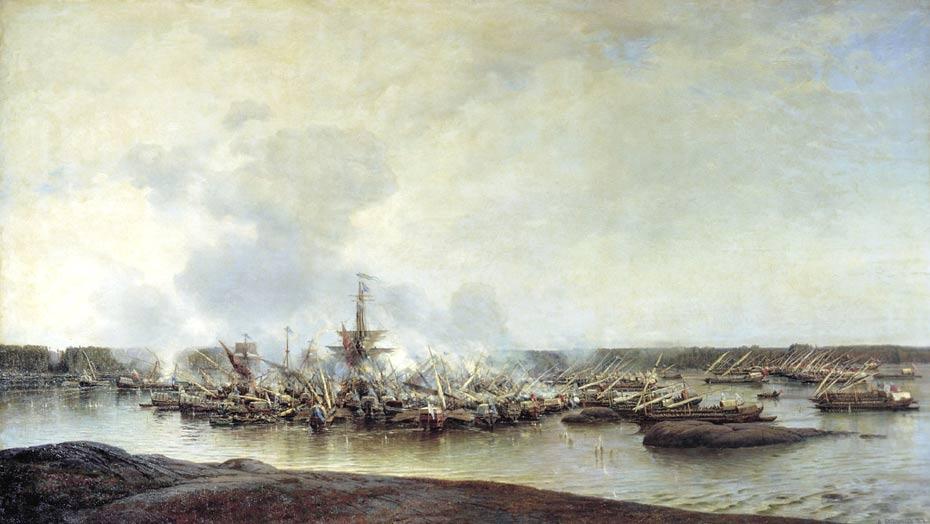 Сражение при Гангуте 27 июля 1714 года. А.П. Боголюбов.. 1875—1877. Центральный Военно-морской музей, Санкт-Петербург