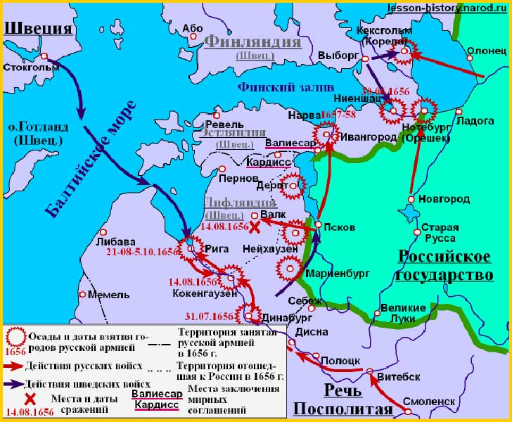 Карта боевых действий русско-шведской войны 1656-1658 гг.