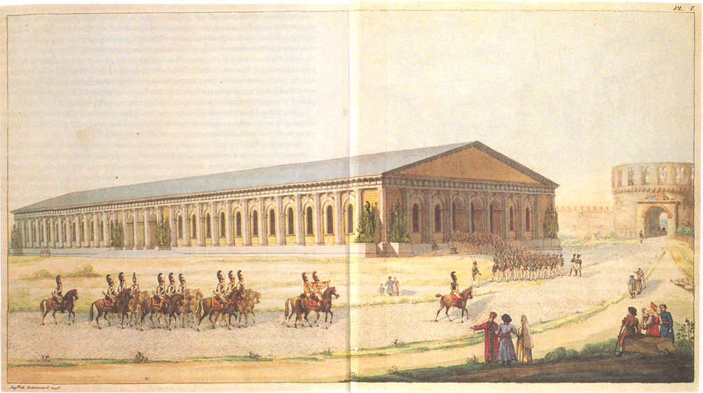 Московский Манеж. Вид со стороны Моховой ул. Акварель архитектора А.Бетанкура. Около 1817 г