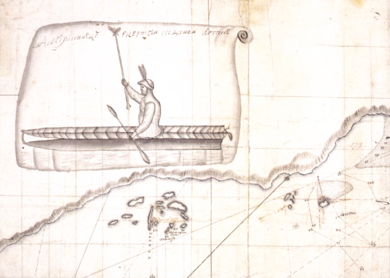 Встреча русских с алеутами. Рисунок Свена Вакселя. 1741 год