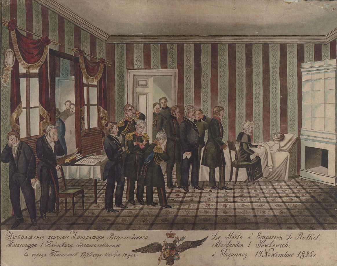 Смерть Александра I в Таганроге. Литография, XIX век