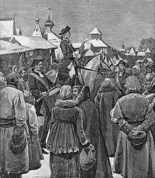 Объявление указа Петра Великого (1699) «считать новый год» с 1 января. Гравюра конца XIX века