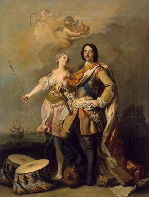 Царь Пётр I с аллегорической фигурой Славы (богиней мудрости Минервой)