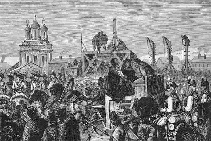 Казнь Пугачёва. Гравюра с картины А. И. Шарлеманя. Середина XIX века
