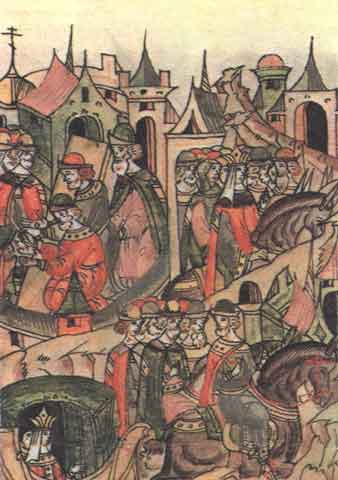 Ослепление великого князя Василия II. Миниатюра из летописного свода. XV век