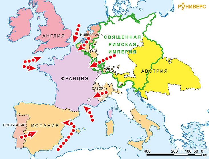 Полки Англии, Испании, Франции, Швеции, Австрии, Баварии, Саксонии, Пруссии