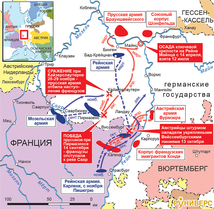 Действия на Среднем Рейне, март 1793 – январь 1794 г.