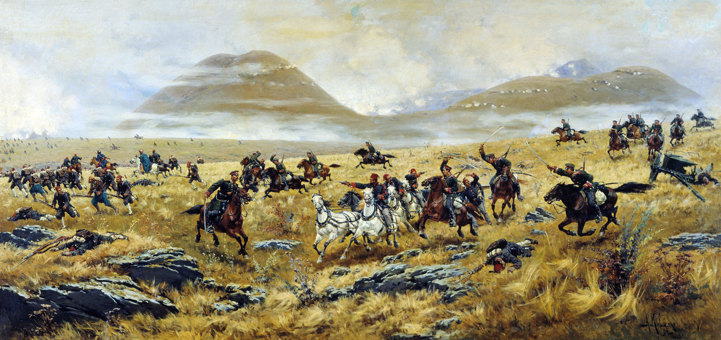 Нижегородские драгуны, преследующие турок по дороге к Карсу во время Аладжинского сражения 3 октября 1877 года