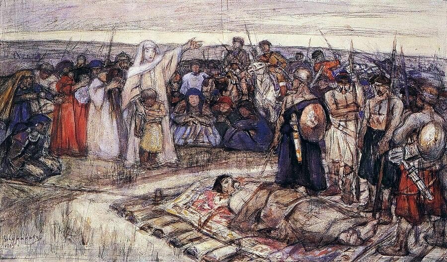 Княгиня Ольга встречает тело князя Игоря (Эскиз неосуществленной картины)