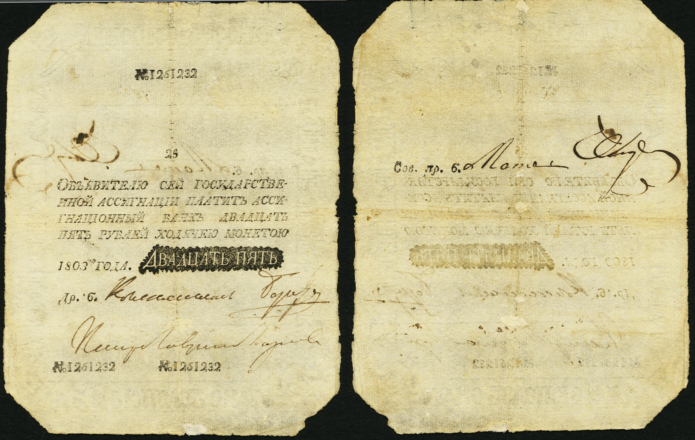 Краткосрочное обязательство Государственного Казначейства Российского правительства адмирала А.В. Колчака. 25 руб. Срок 1 мая 1920 г. Аверс