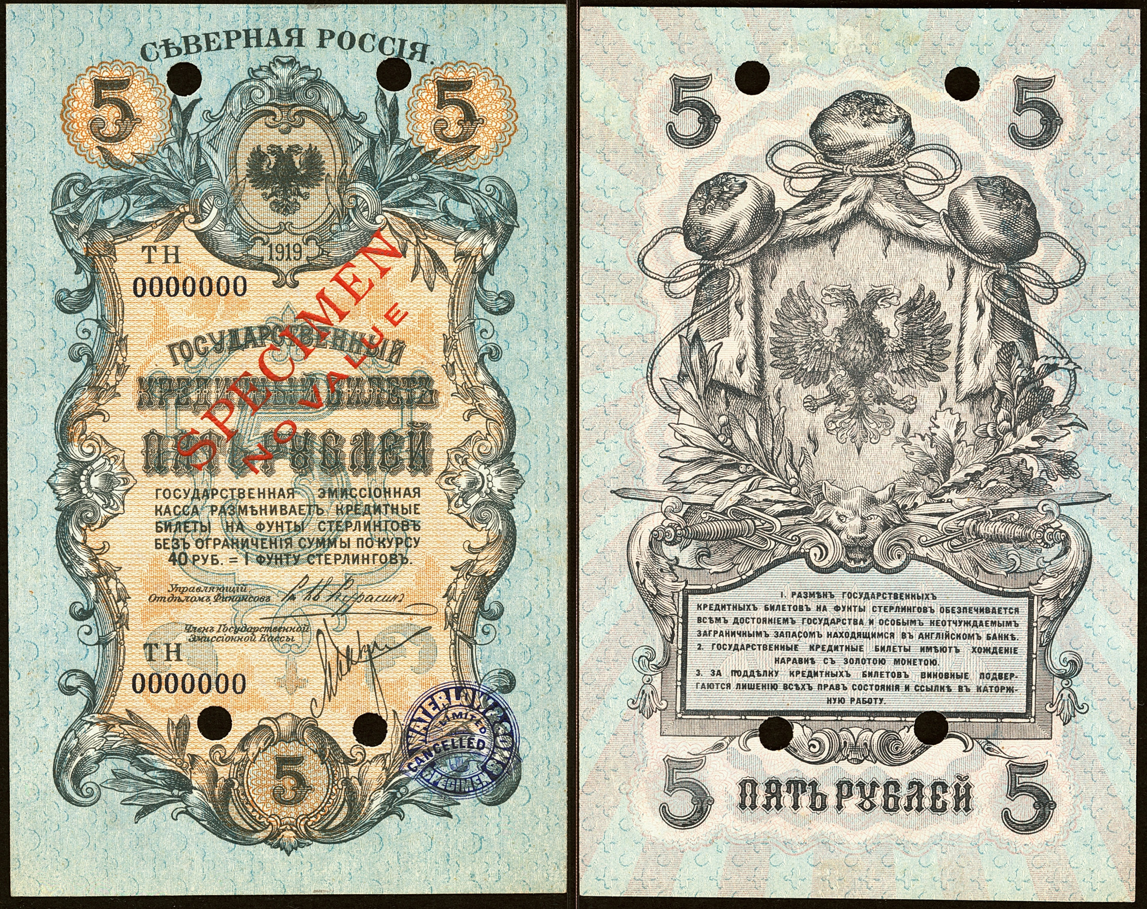 Краткосрочное обязательство Государственного Казначейства Российского правительства адмирала А.В. Колчака 50 руб. Срок 1 марта 1920 г. Аверс