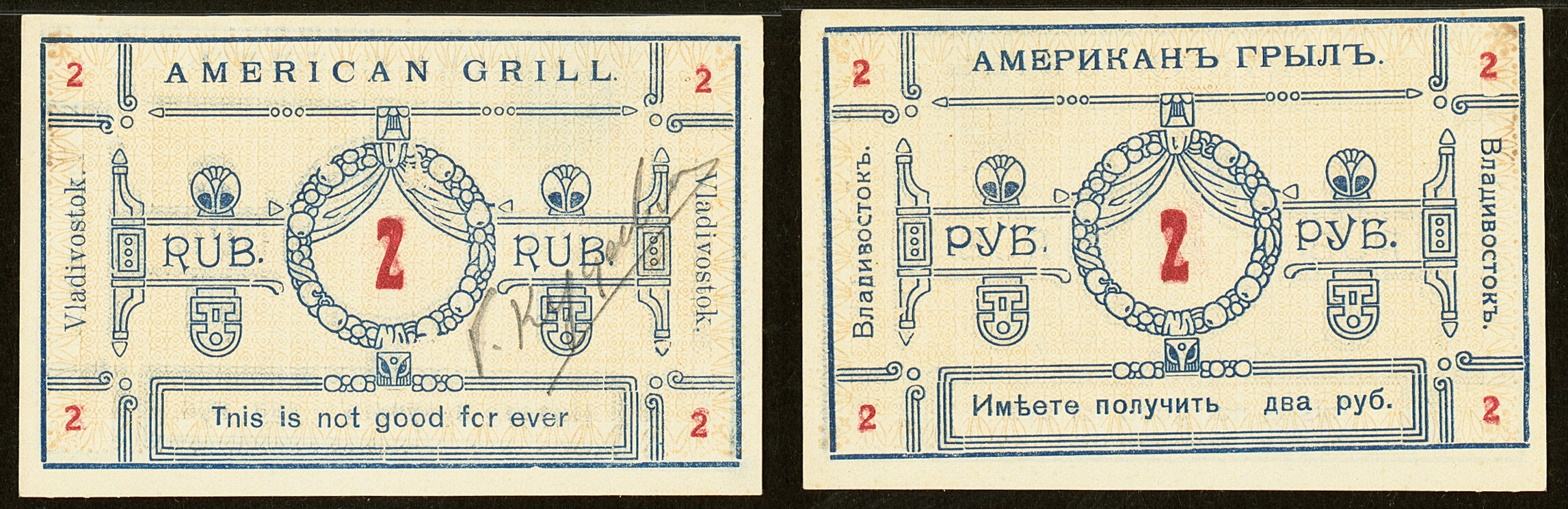 2 рубля, Владивосток, ресторан «Американъ Грылъ», 1919 г.