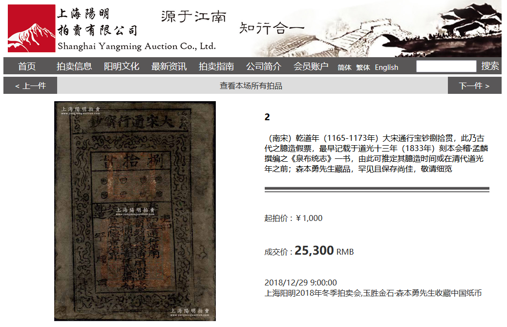 «Настоящая фальшивая банкнота Южной Сун (1165-1173 гг.) изготовленная в 1833 г., очень редкая!»