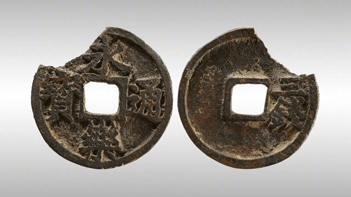 Монета в 3 вэнь, с указанием номинала на реверсе из коллекции Шанхайского музея. Диаметр 33.5 мм, масса 12.4 г.