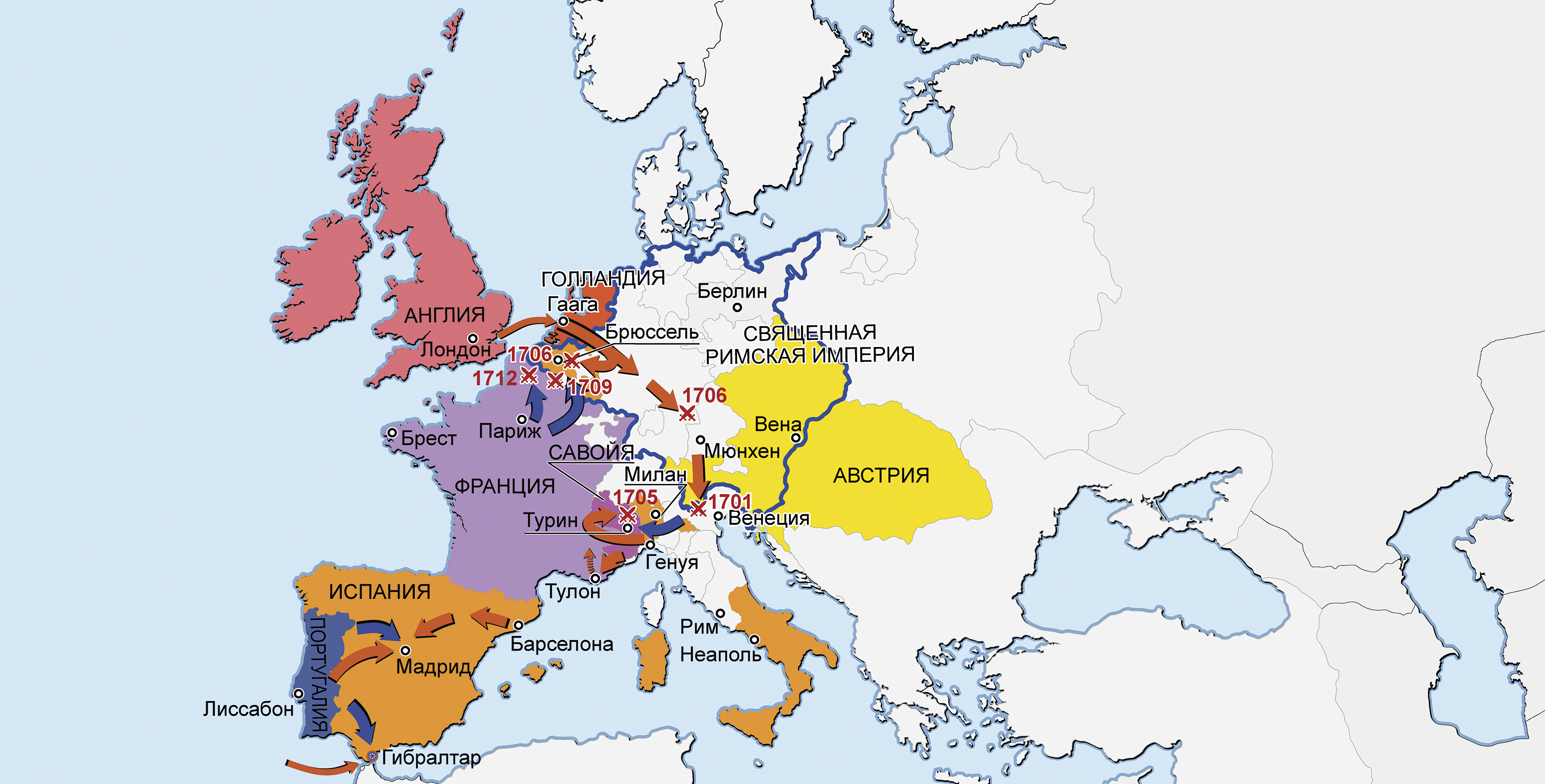 Карта боевых действий Войны за испанское наследство (1701–1714)
