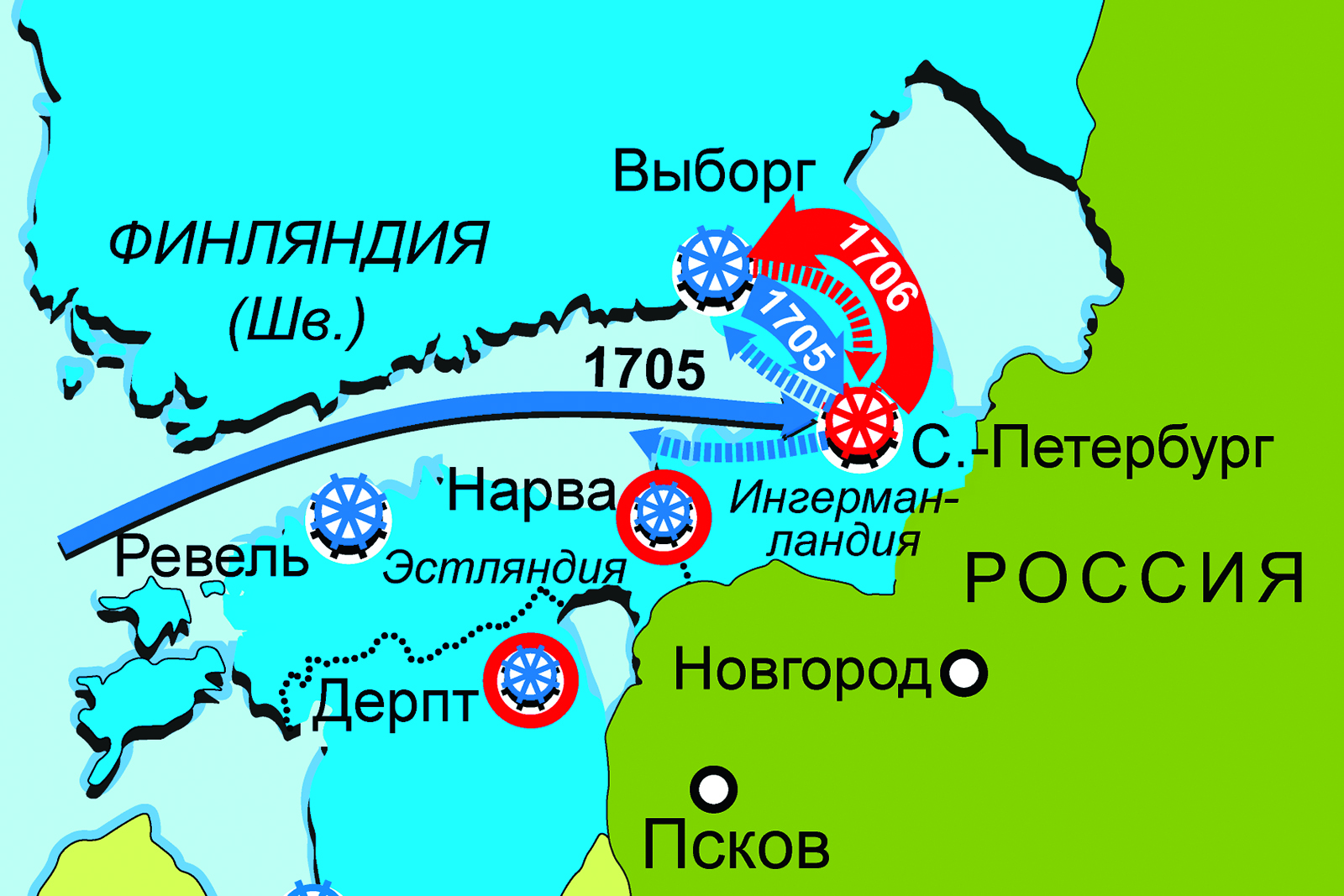Карта кампаний 1705–1706 гг. Действия в Карелии и Ингерманландии (Великая Северная война 1700–1721 гг.)