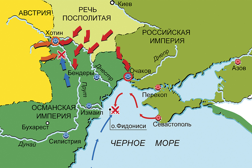 Карта кампании 1788 г. на Дунае и Черном море (Война России и Австрии против Турции 1787–1791 гг.)