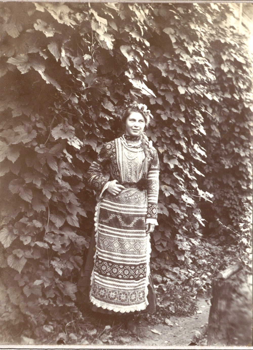 Фото Мяздрикова И.П. Дочь Валерия в народном костюме во дворе дома.Муром,1903г. Собрание Муромского историко-художественного музея. М-12681-96