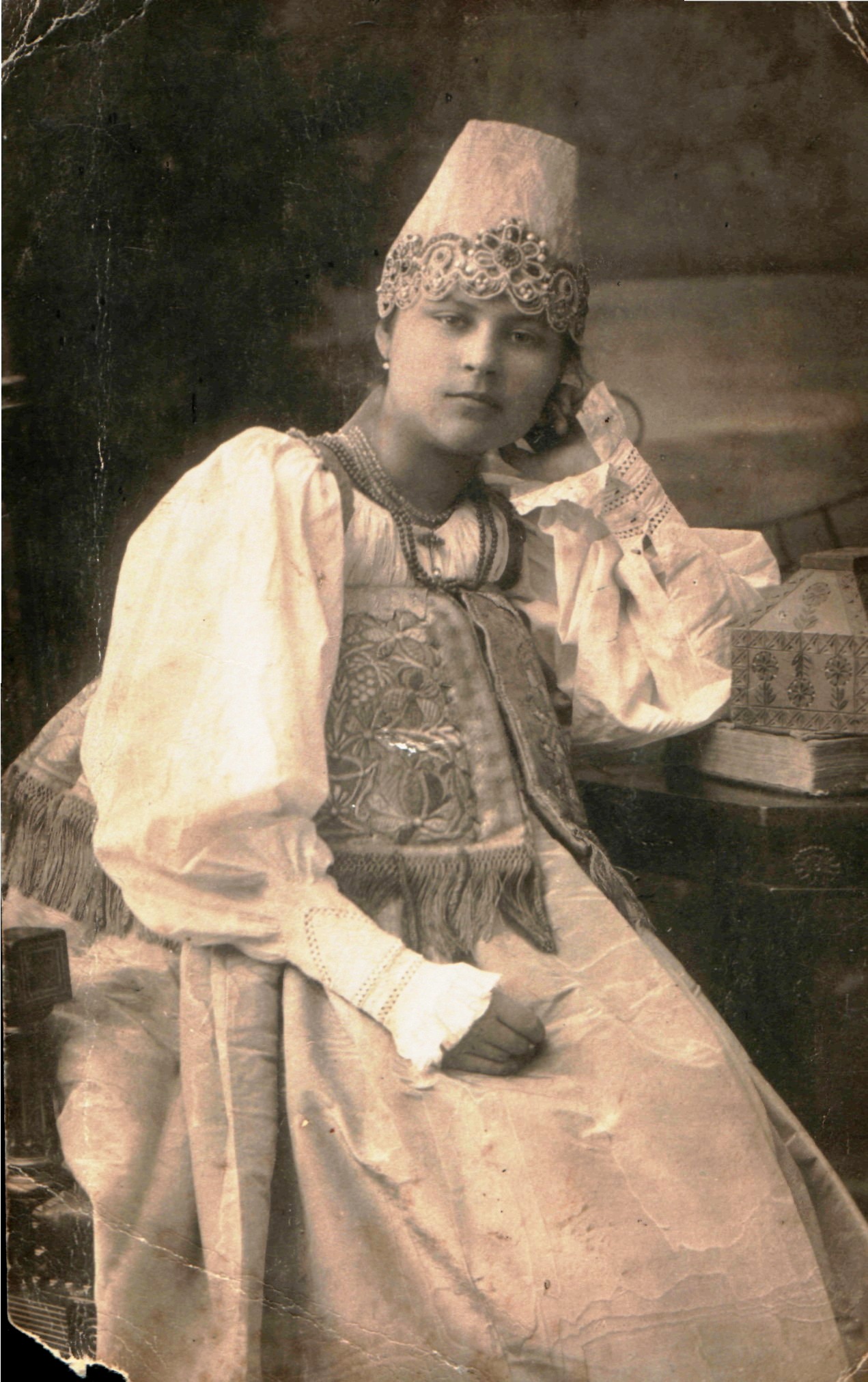 Неизвестный фотограф. Портрет девушки в русском наряде. Муром, 1913. Частное собрание (архив Суховых-Кураповых).