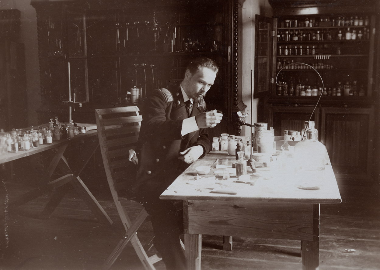 Неизвестный фотограф. г. Касимов. Преподаватель технического училища инженер Н.И.Иванов в кабинете химии. 1907 г.